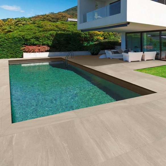 Stone effect outdoor porcelain stoneware, increased thickness (2 CM), rectified, R11, natural surface, 60x60 size. Made in Italy.
