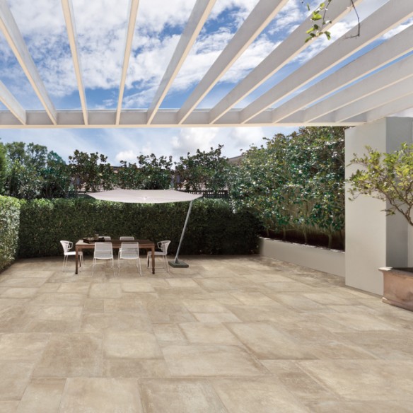 Piastrella in gres porcellanato, effetto cemento, pavimenti esterni, rettificate, superficie naturale. MADE IN ITALY.