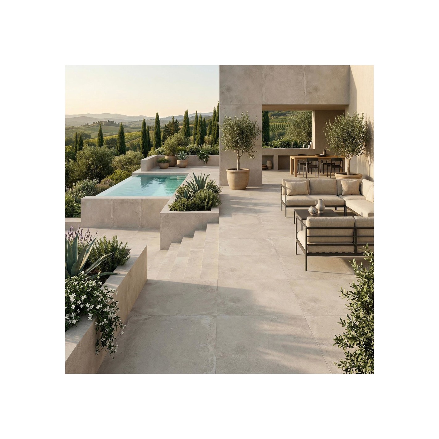 Gres Porcellanato da esterno effetto pietra, spessore maggiorato rettificato, grip, Made in Italy.